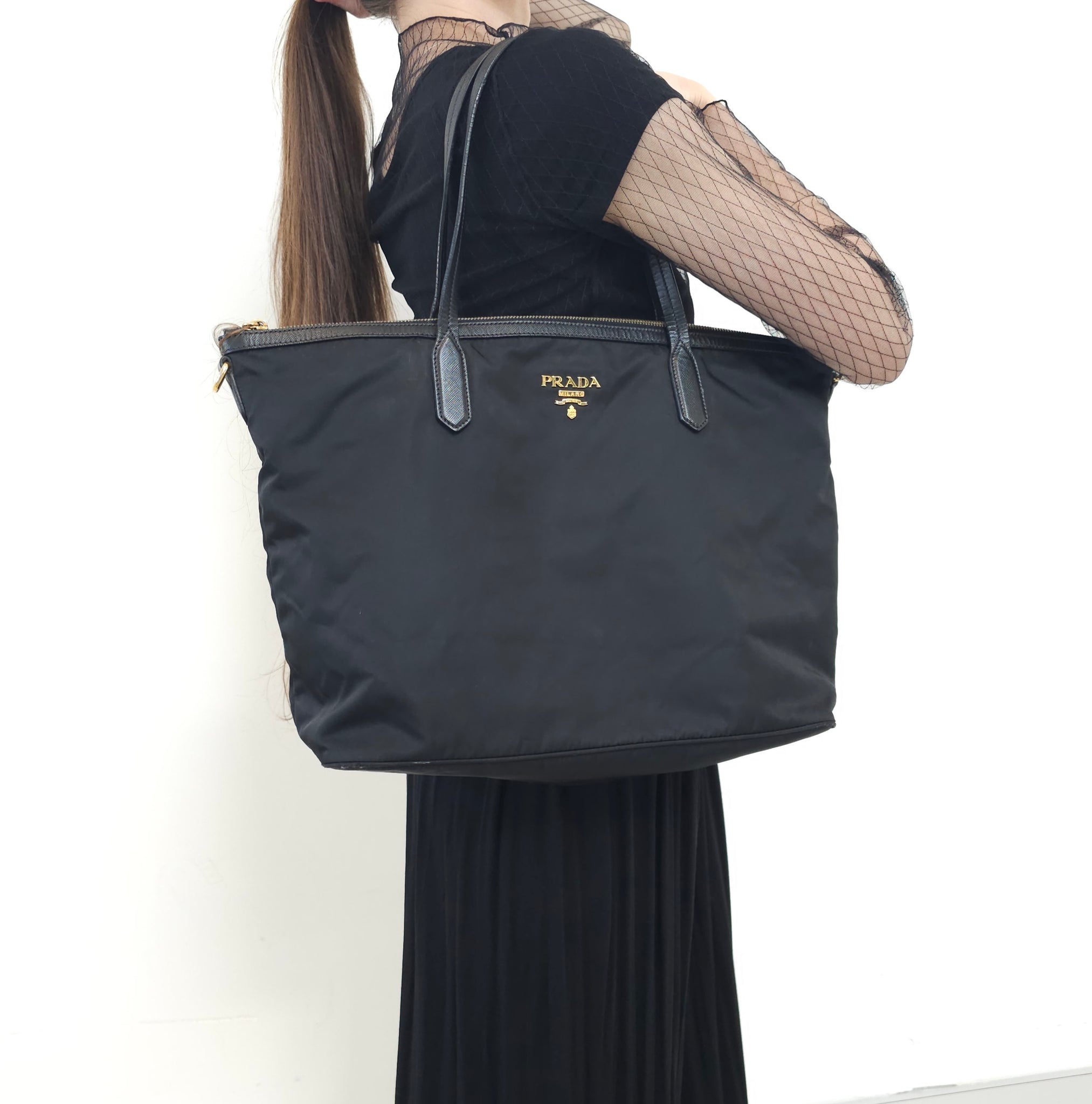 Prada Tessuto Nylon Saffiano Tote Black TWS