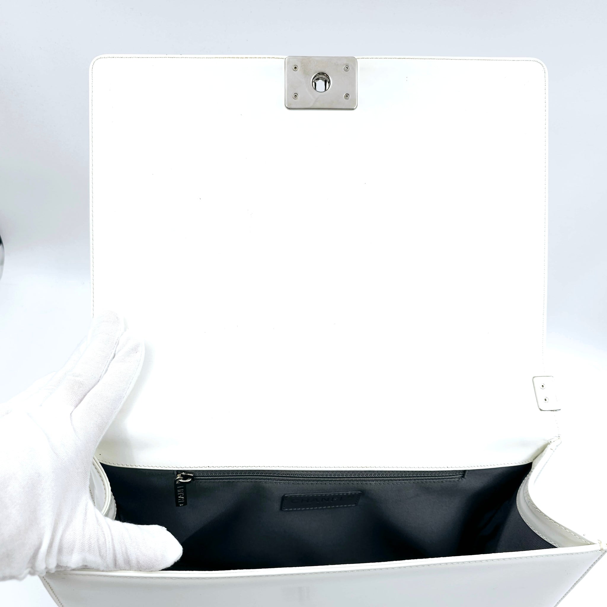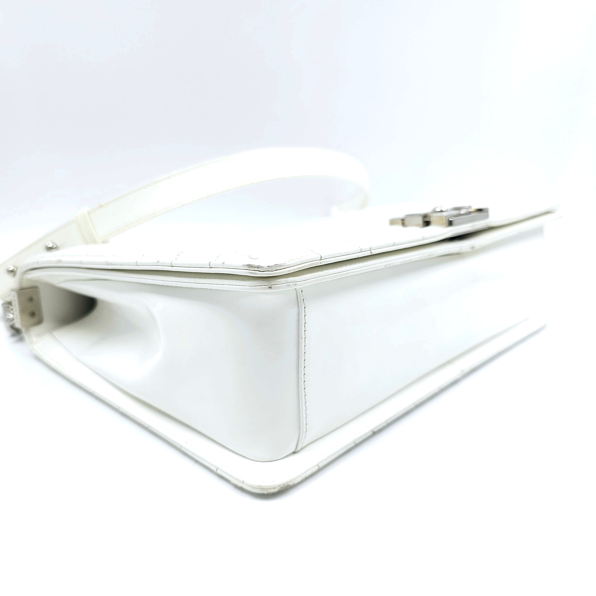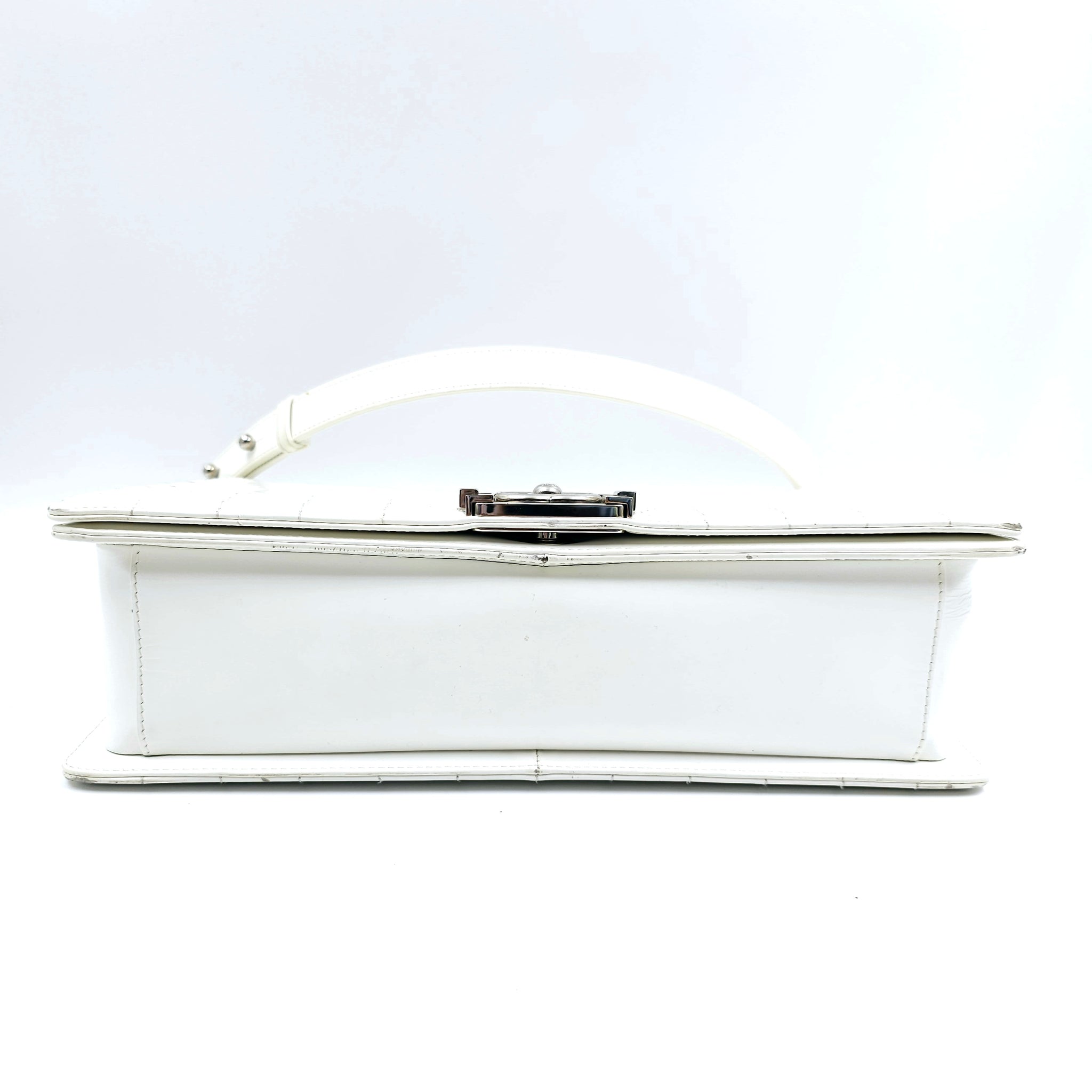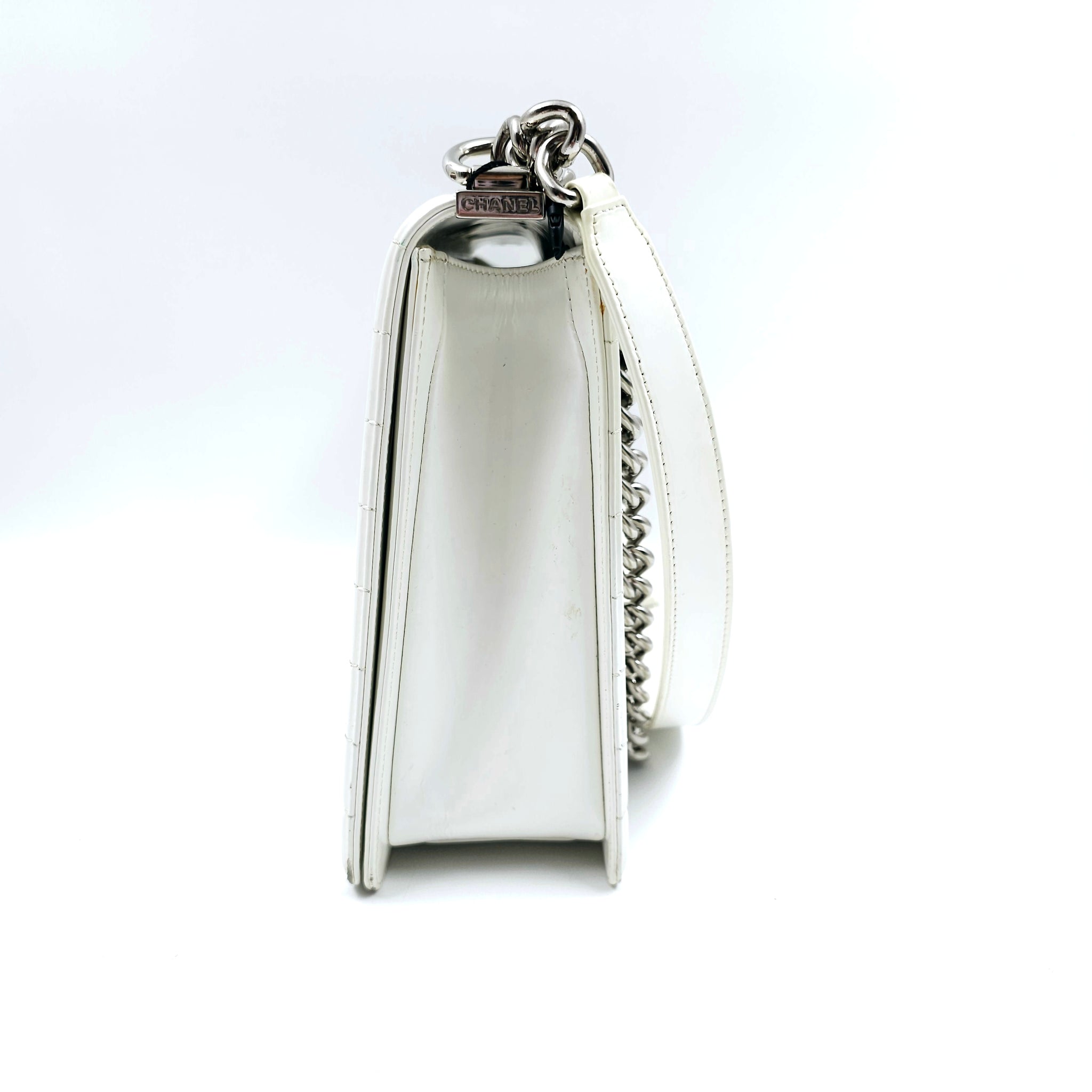 Chanel White Patent Leather Large Leboy Bag