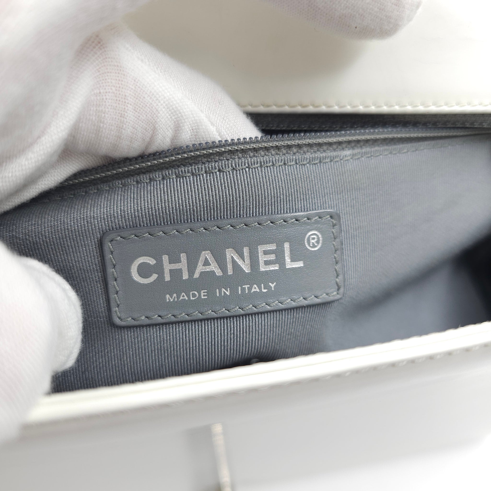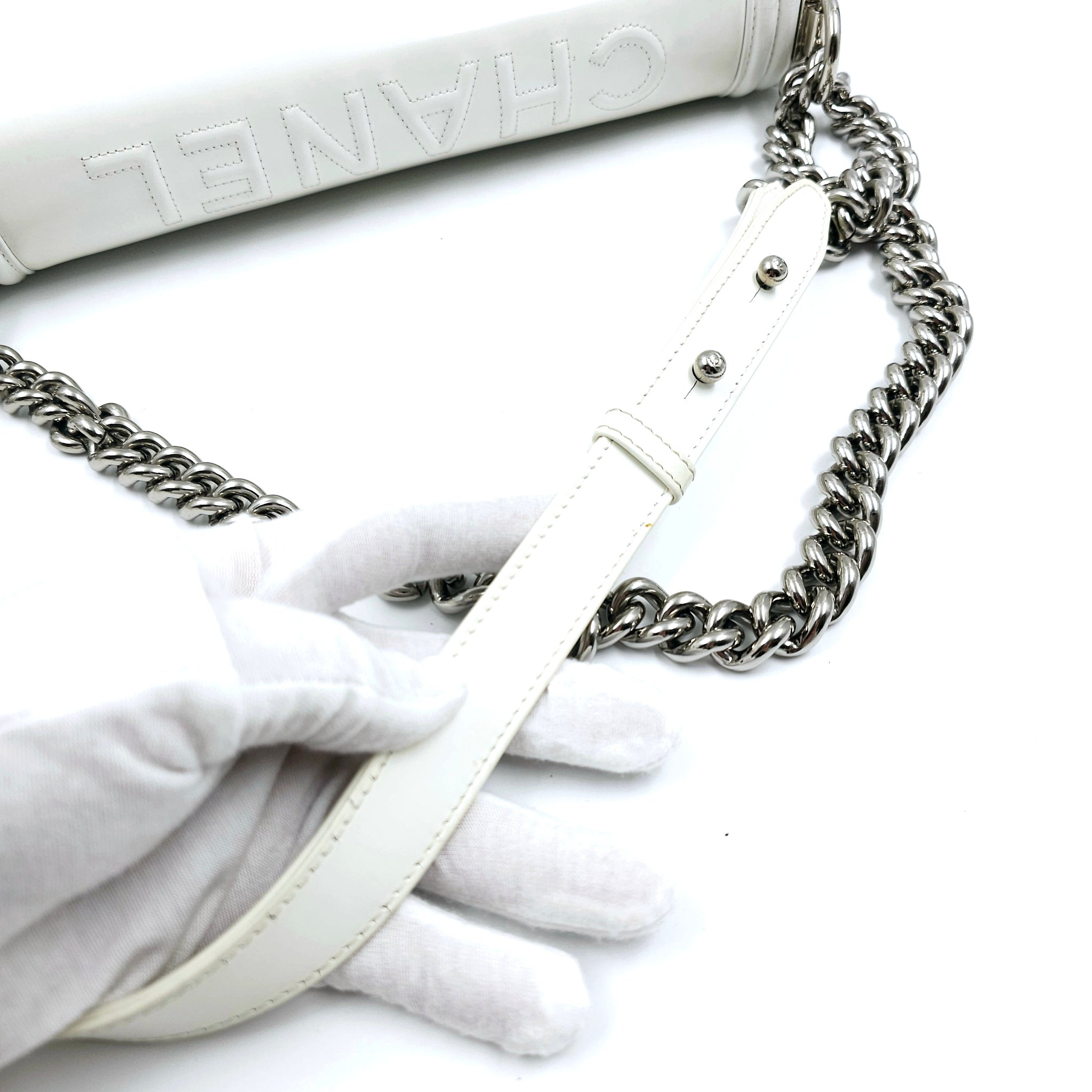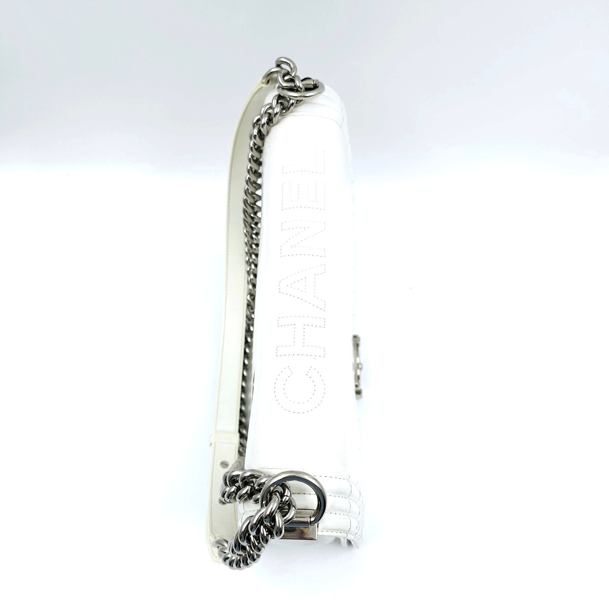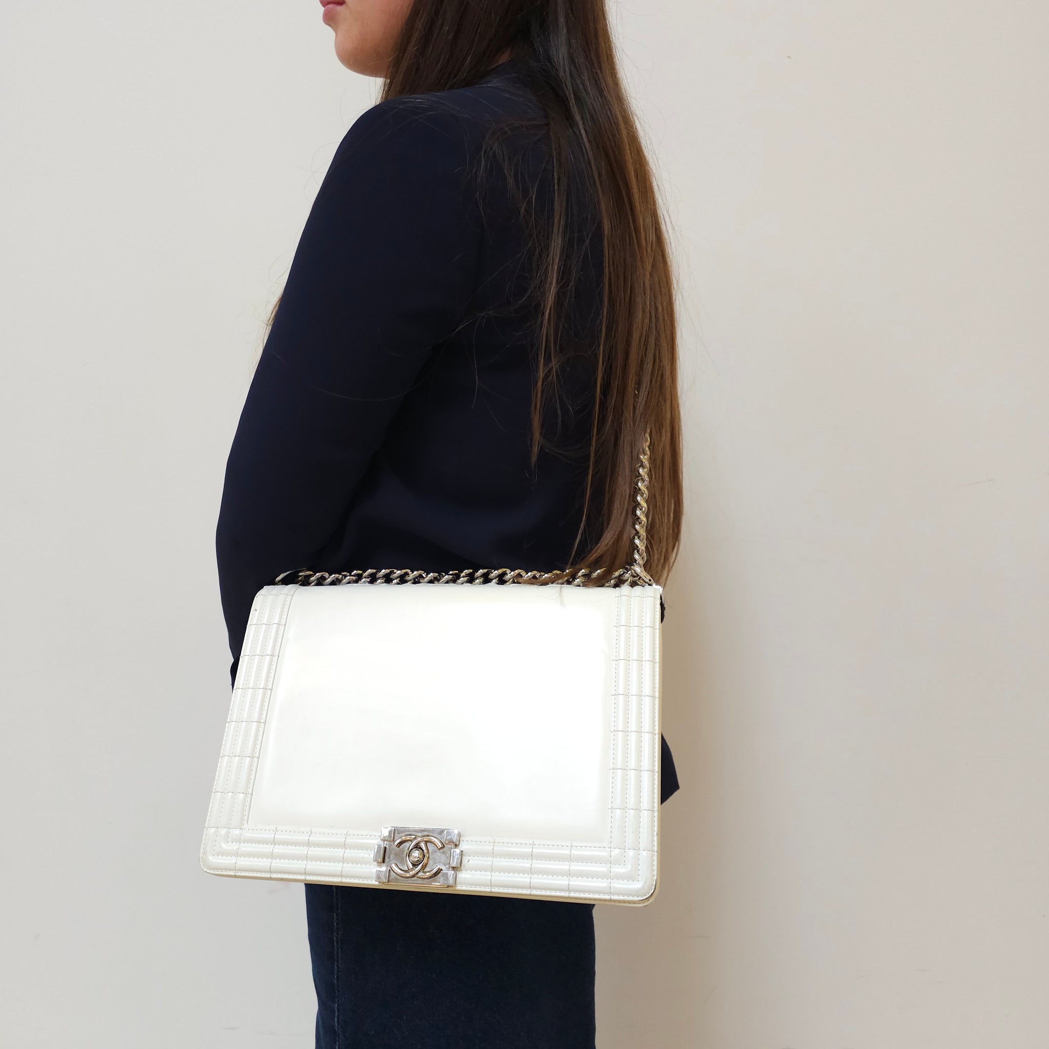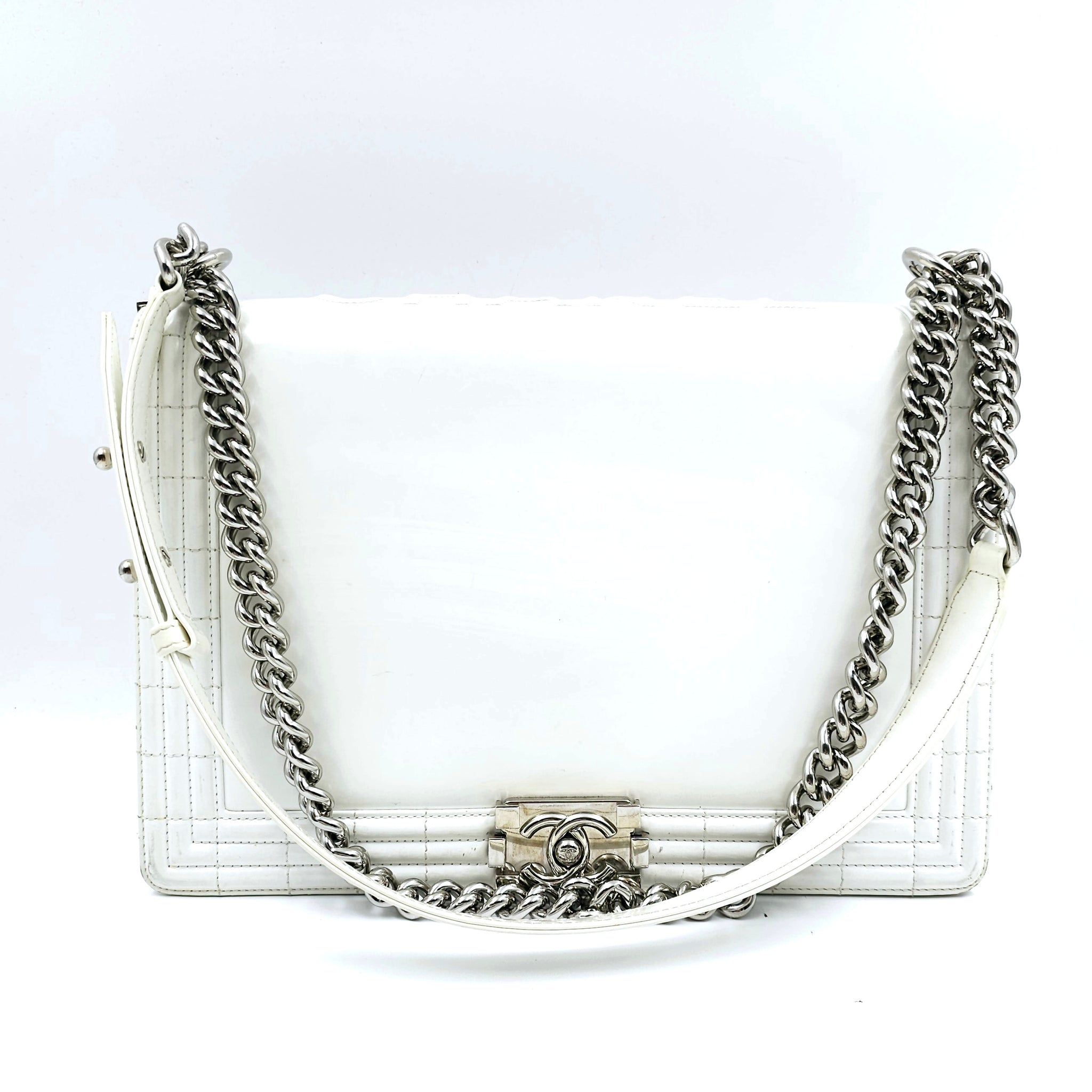 Chanel White Patent Leather Large Leboy Bag
