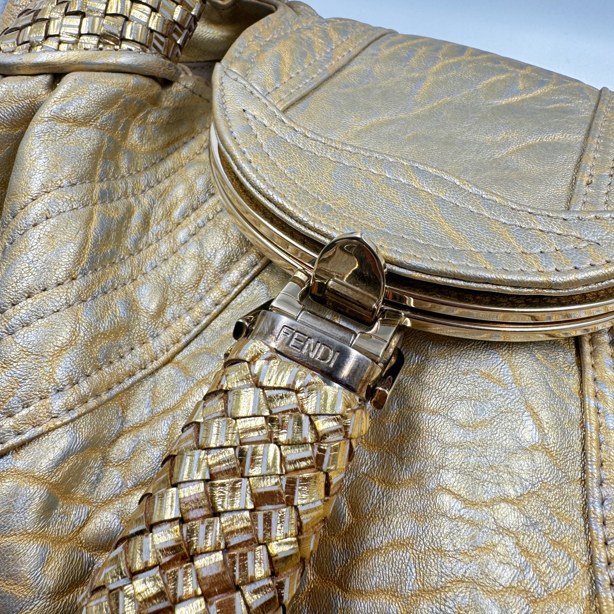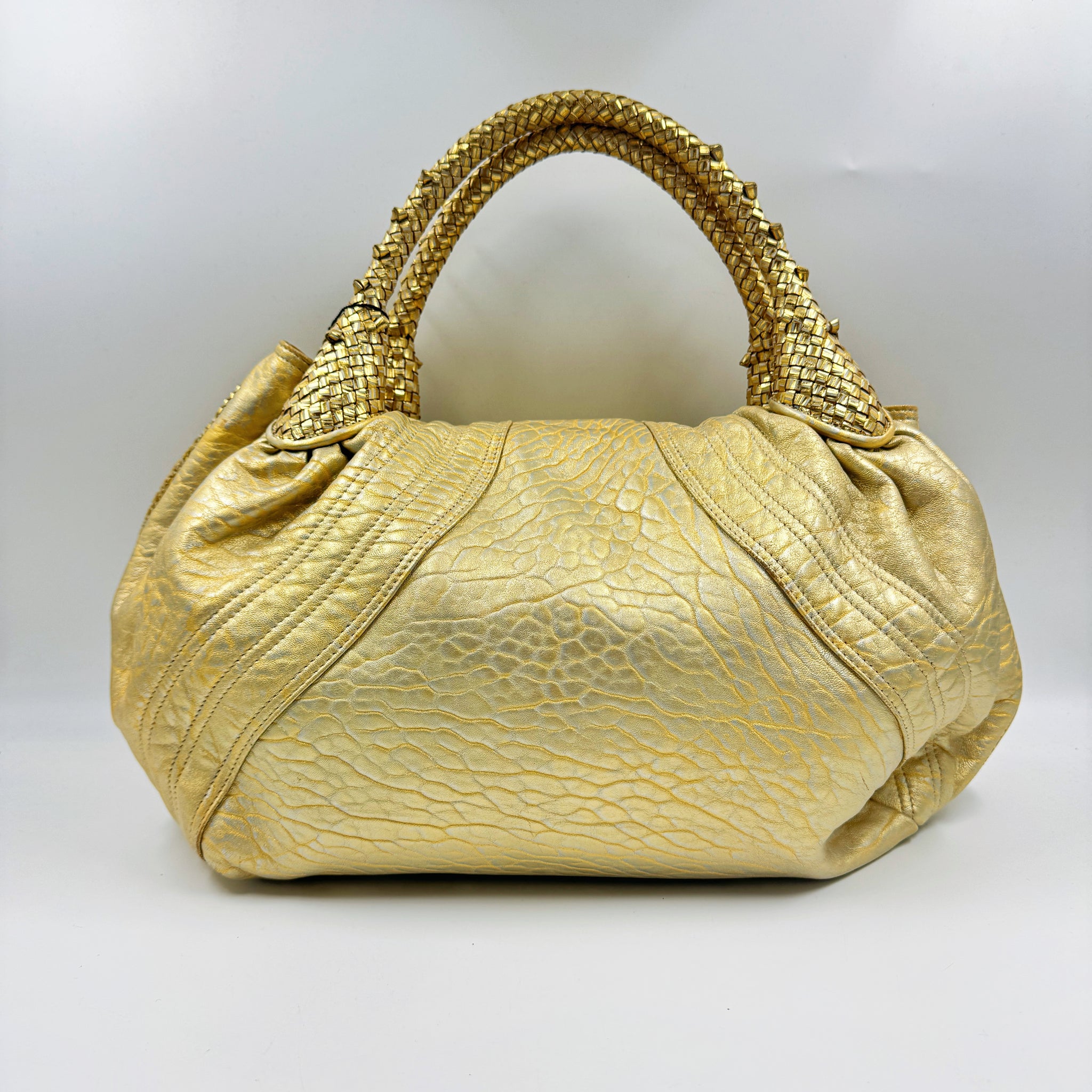 Fendi Metallic Gold Holographic Textured Leather Spy Hobo TWS
